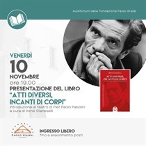 Il 10 novembre 2023, alle ore 19.00, presso l’Auditorium della Fondazione Paolo Grassi; Librinstreamig in collaborazione con la Fondazione Paolo Grassi e Valle D’Itria Channel presenteranno il saggio dell’autrice, sceneggiatrice Irene Gianeselli: “Atti diversi, incanti di corpi. Introduzione al teatro di Pier Paolo Pasolini. Vol. 1: Introduzione al teatro di Pier Paolo Pasolini”, Les Flaneurs Edizioni.